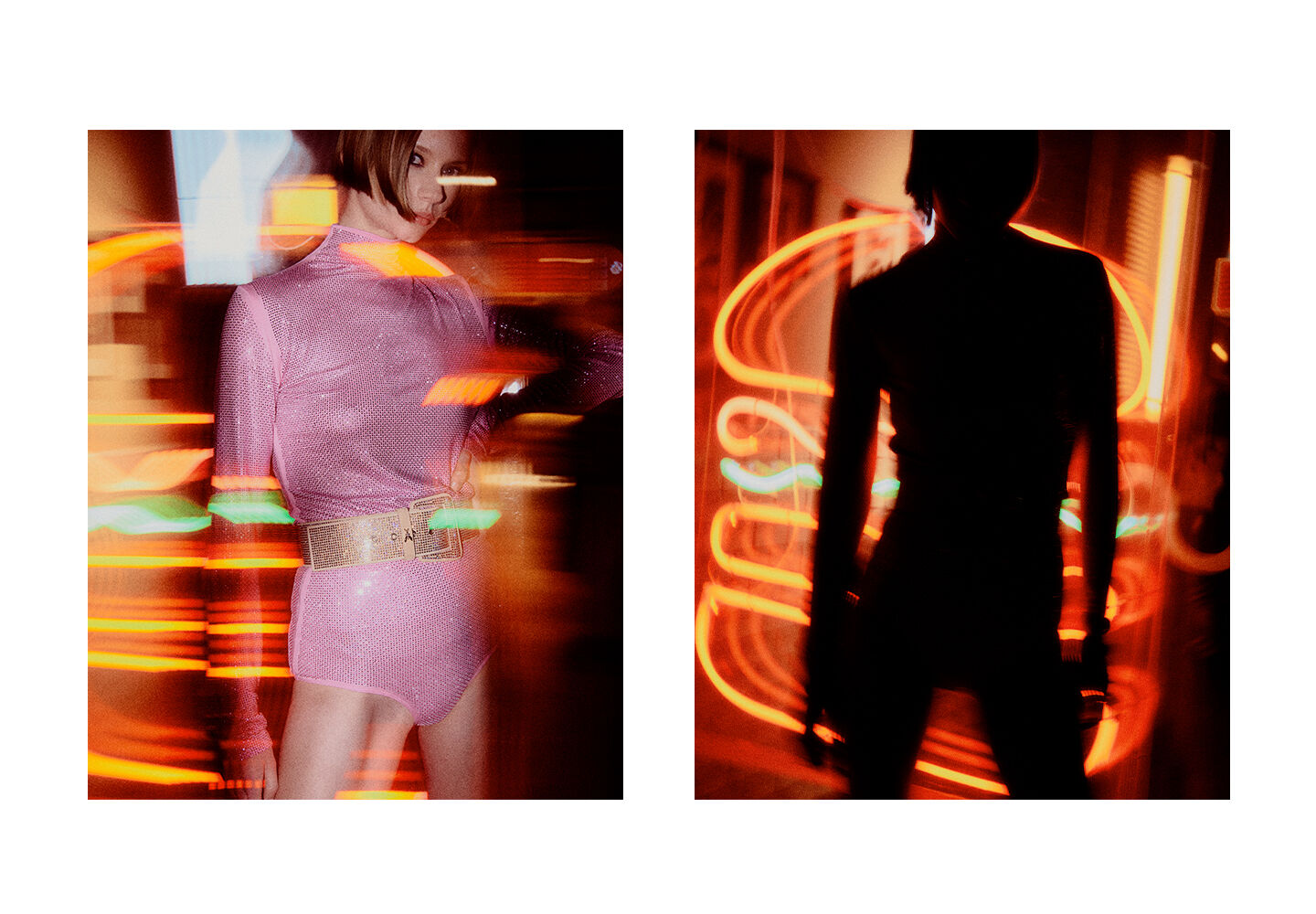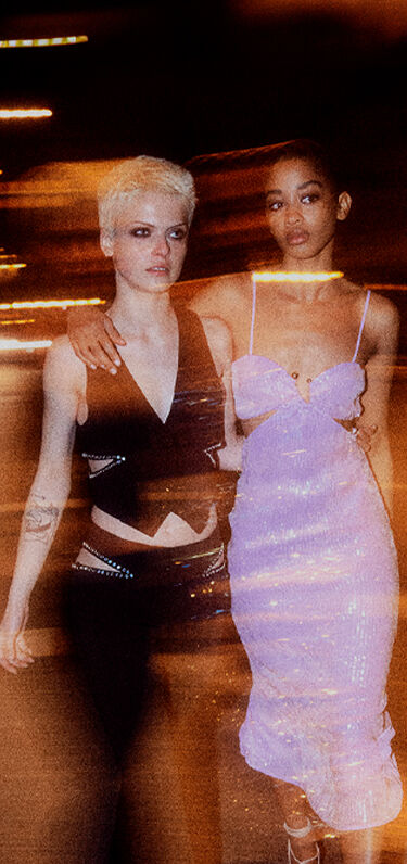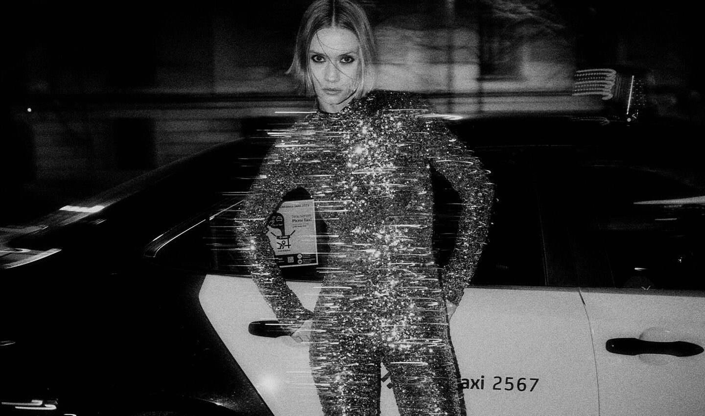 Eine Nacht voller Stil und Verführung: Zwischen den Lichtern der Straßen der Stadt, subtilen Kontrasten und glitzernden Elementen spiegelt sich die neue Eveningwear von Patrizia Pepe in Metallic-Tönen und laminierten Effekten wider.