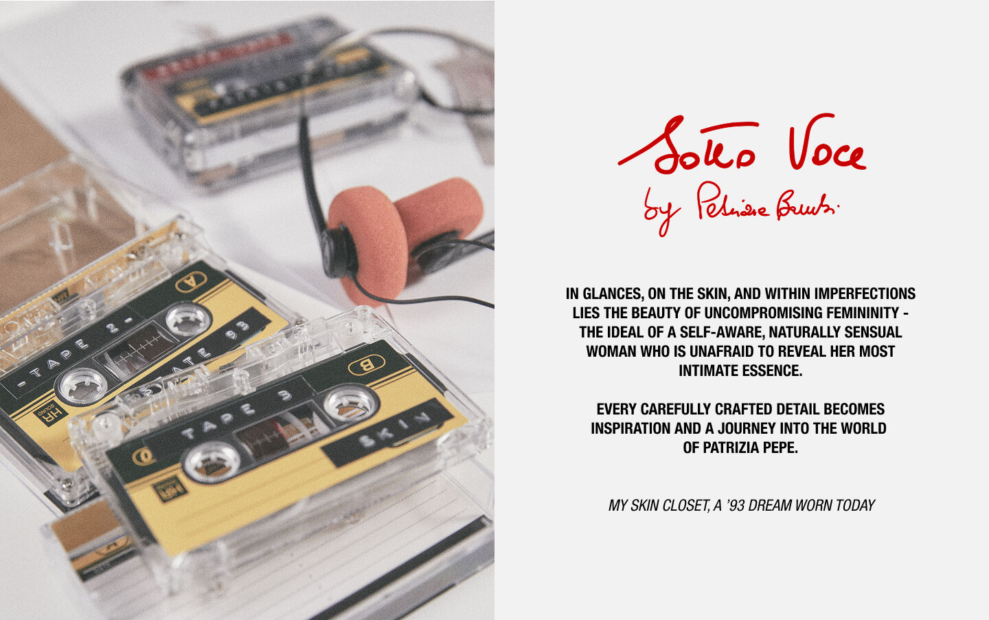 The voice of Patrizia Bambi, Creative Director of the Brand, invites us to discover My Skin Closet. A wardrobe rooted in 1993, the year the Brand was founded, which strongly reflects the style and identity of Patrizia Pepe.