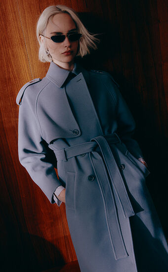 The palette swings between neutral urban tones, lively pops of color, and dazzling sparkles. Knit layers play with fluid shapes and fitted silhouettes, paired with skirts in glossy satin or adorned with macro sequins. The dualism of masculine and feminine inspires deconstructed trench coats crafted from lightweight wool and technical fabrics. Surfaces glow with a polished brightness, while new soft quilting envelops the body in a cosy embrace.